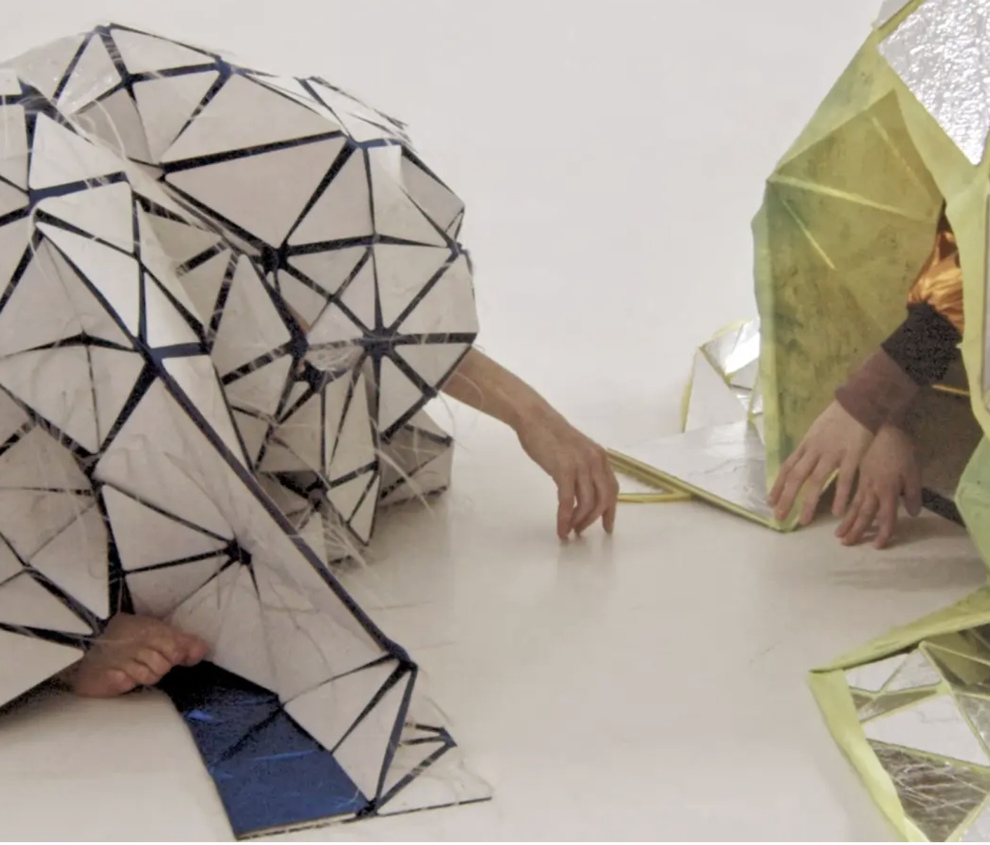 Fragiles Apparitions – variations in 3 songs is a three-part ritual that explores the soft power of the ephemeral. Between textile carapaces and soft organs, architectures of soap films and mirror reflections, this performance-installation envelops us in an immersive, sensorial environment where forms tremble, dissolve, and reappear. Structured as three songs in dialogue, the work moves through three interconnected movements in which dance, matter, and live music merge. The result of an extended research process, Fragiles Apparitions brings together the collaborative practice of Sarah Wendt and Pascal Dufaux. In this encounter between bodies and materials, movement and image, the performance offers a hypnotic, tactile experience—an homage to fragility, interdependence, and the precariousness of life.
